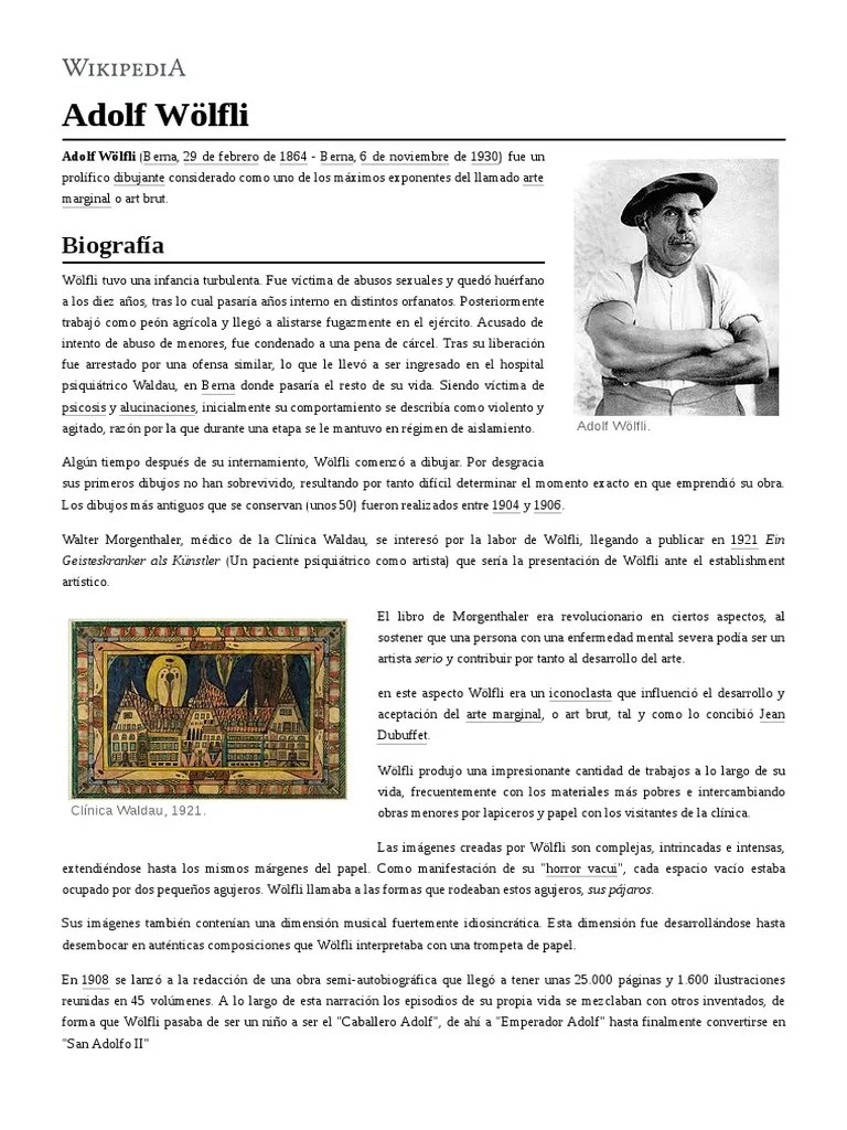 He was abused both physically and sexually as a child, and was orphaned at the age of 10... Wölfli was born in bern, switzerland... Wölfli was born in bern, switzerland.